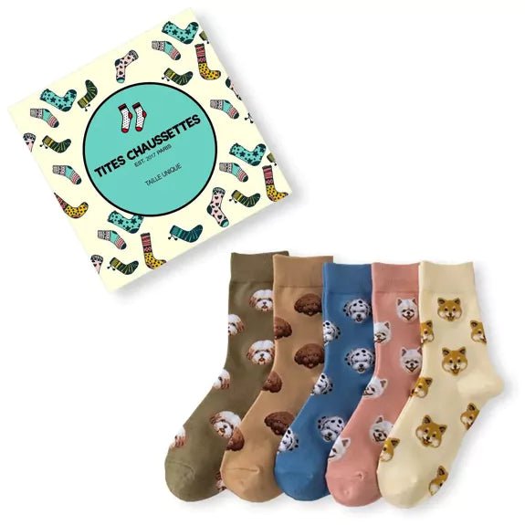 Votre animal de compagnie préféré vous suivra tout au long de la journée. Originales et colorées, elles sauront ravir tous les amoureux de nos amis les chiens. Fini les chaussettes ennuyeuses !